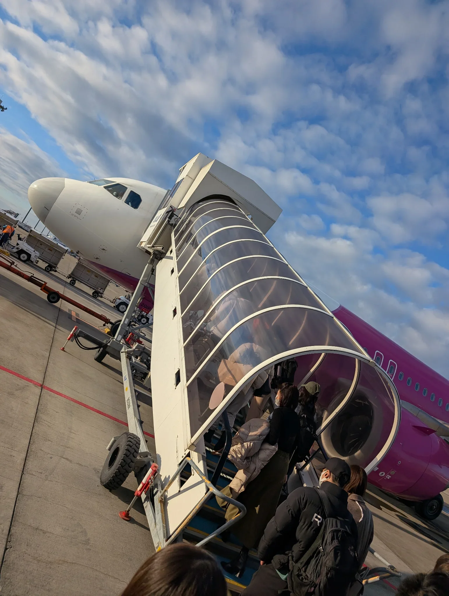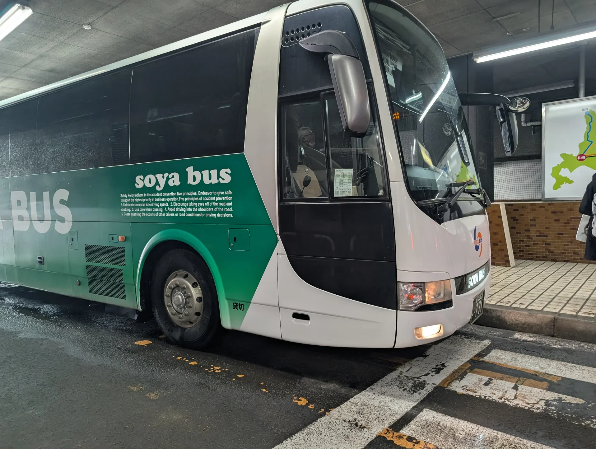飛行機、バス、電車の選択肢がありましたが、節約のためバスを選択。