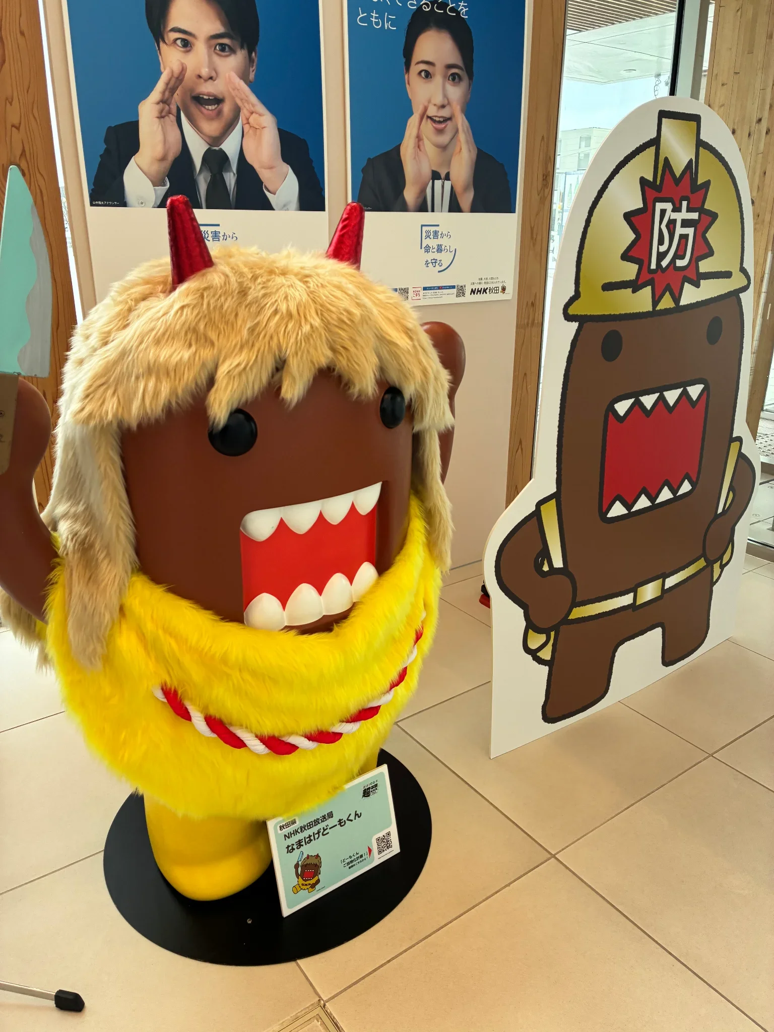 秋田駅にはなまはげと秋田犬がいました。
